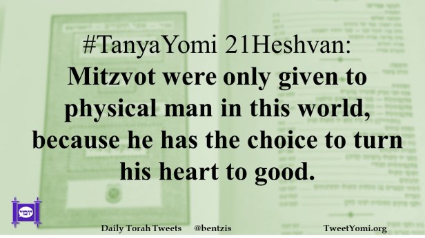 #TanyaYomi 21Heshvan: Mitzvot were only given to physical man in this world, because he has the choice to turn his heart to good.