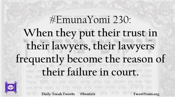 #EmunaYomi 230: When they put their trust in their lawyers, their lawyers frequently become the reason of their failure in court.