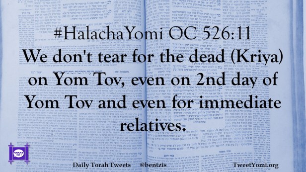 #HalachaYomi OC 526:11 We don’t tear for the dead (Kriya) on Yom Tov, even on 2nd day of Yom Tov and even for immediate relatives.