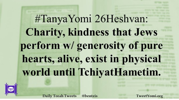 #TanyaYomi 26Heshvan: Charity, kindness that Jews perform w/ generosity of pure hearts, alive, exist in physical world until TchiyatHametim.