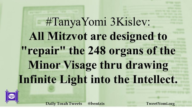 #TanyaYomi 3Kislev: All Mitzvot are designed to “repair” the 248 organs of the Minor Visage thru drawing Infinite Light into the Intellect.