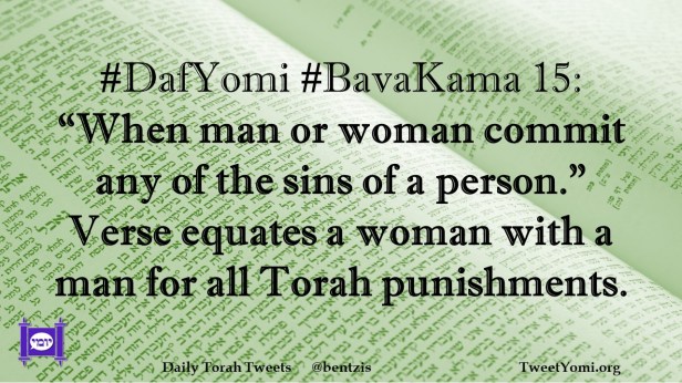 BavaKama, DafYomi #DafYomi #BavaKama 15 Date: November 23, 2023Author: netanelspitz #DafYomi #BavaKama 15: “When man or woman commit any of the sins of a person.” Verse equates a woman with a man for all Torah punishments. Share this: Share on X (Opens in new window) X Share on Facebook (Opens in new window) Facebook Like Loading... Related