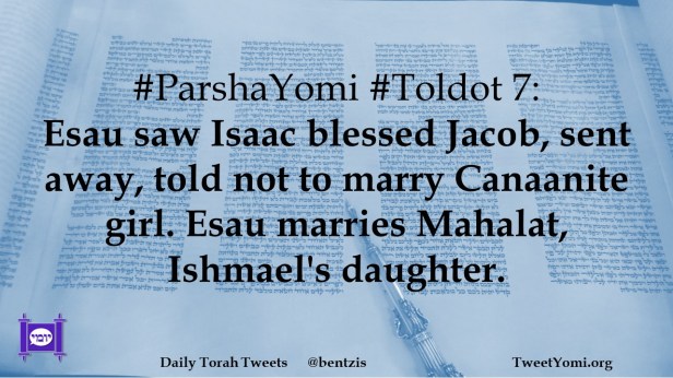 #ParshaYomi #Toldot 7: Esau saw Isaac blessed Jacob, sent away, told not to marry Canaanite girl. Esau marries Mahalat, Ishmael’s daughter.