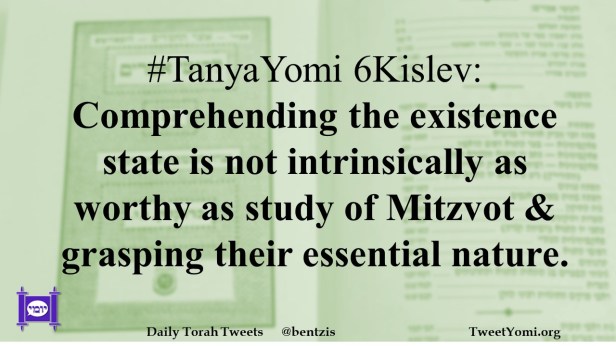 #TanyaYomi 6Kislev: Comprehending the existence state is not intrinsically as worthy as study of Mitzvot & grasping their essential nature.