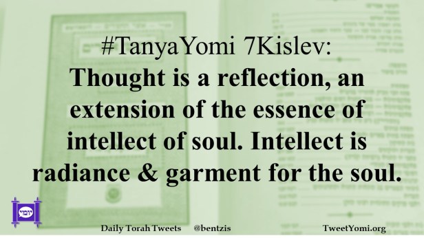 #TanyaYomi 7Kislev: Thought is a reflection, an extension of the essence of intellect of soul. Intellect is radiance & garment for the soul.
