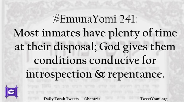 #EmunaYomi 241: Most inmates have plenty of time at their disposal; God gives them conditions conducive for introspection & repentance.