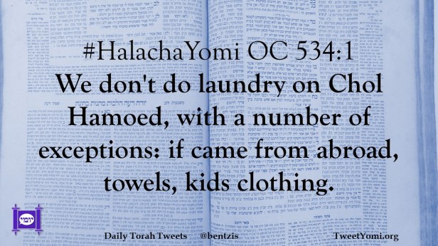 #HalachaYomi OC 534:1 We don’t do laundry on Chol Hamoed, with a number of exceptions: if came from abroad, towels, kids clothing.