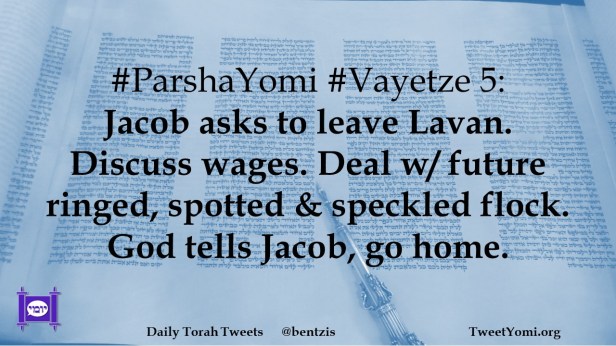 #ParshaYomi #Vayetze 5: Jacob asks to leave Lavan. Discuss wages. Deal w/ future ringed, spotted & speckled flock. God tells Jacob, go home.