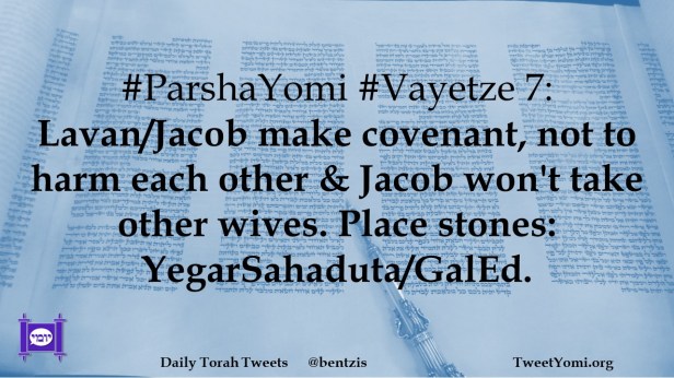 #ParshaYomi #Vayetze 7: Lavan/Jacob make covenant, not to harm each other & Jacob won’t take other wives. Place stones: YegarSahaduta/GalEd.
