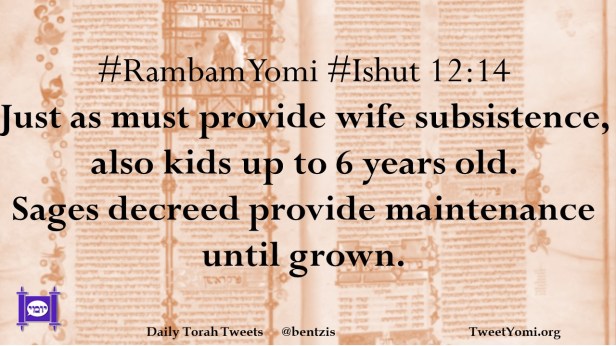 #RambamYomi #Ishut 12:14 Just as must provide wife subsistence, also kids up to 6 years old. Sages decreed provide maintenance until grown.