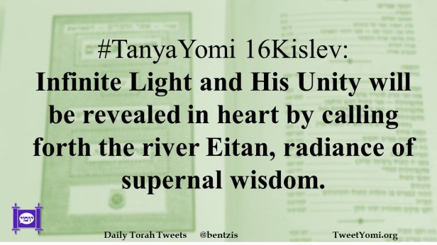 #TanyaYomi 16Kislev: Infinite Light and His Unity will be revealed in heart by calling forth the river Eitan, radiance of supernal wisdom.