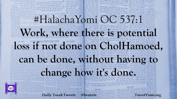 #HalachaYomi OC 537:1 Work, where there is potential loss if not done on CholHamoed, can be done, without having to change how it’s done.