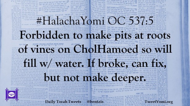 #HalachaYomi OC 537:5 Forbidden to make pits at roots of vines on CholHamoed so will fill w/ water. If broke, can fix, but not make deeper.