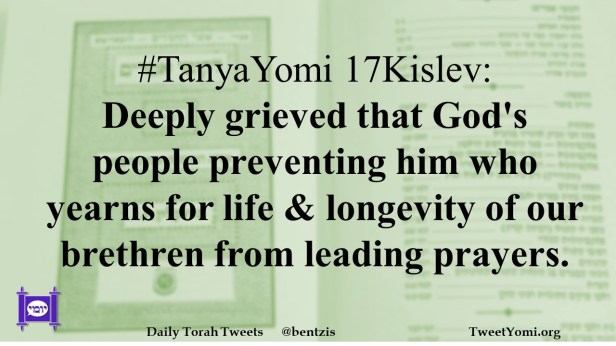 #TanyaYomi 17Kislev: Deeply grieved that God’s people preventing him who yearns for life & longevity of our brethren from leading prayers.