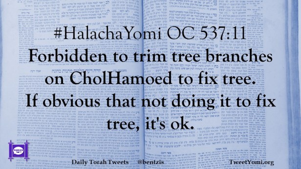 #HalachaYomi OC 537:11 Forbidden to trim tree branches on CholHamoed to fix tree. If obvious that not doing it to fix tree, it’s ok.
