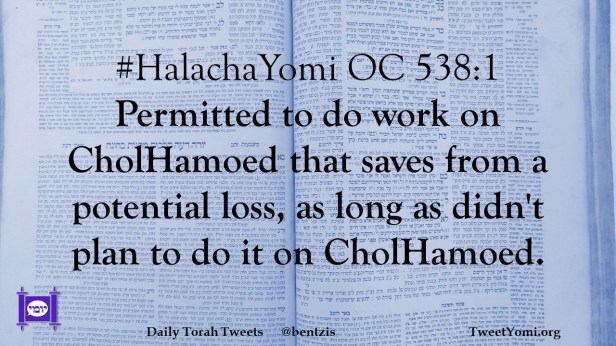 HalachaYomi OC 538:1 Permitted to do work on CholHamoed that saves from a potential loss, as long as didn’t plan to do it on CholHamoed.