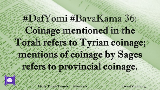 BavaKama, DafYomi #DafYomi #BavaKama 36 Date: December 11, 2023Author: netanelspitz #DafYomi #BavaKama 36: Coinage mentioned in the Torah refers to Tyrian coinage; mentions of coinage by Sages refers to provincial coinage. Share this: Share on X (Opens in new window) X Share on Facebook (Opens in new window) Facebook Like Loading... Related