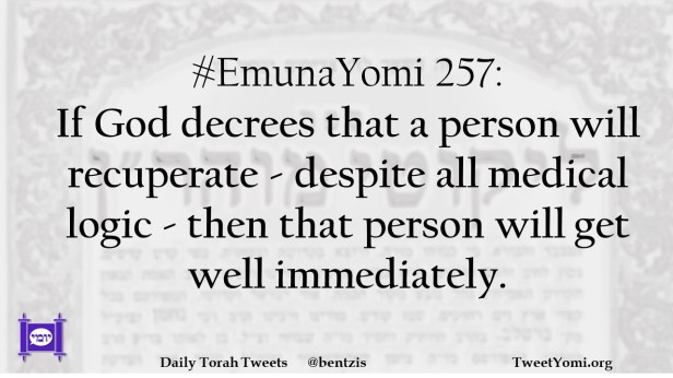 #EmunaYomi 257: If God decrees that a person will recuperate – despite all medical logic – then that person will get well immediately.
