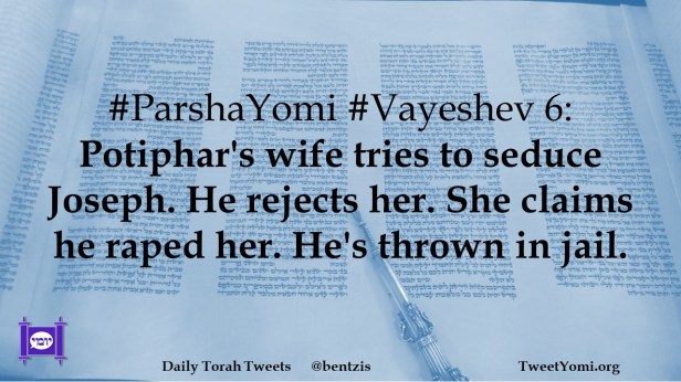 #ParshaYomi #Vayeshev 6: Potiphar’s wife tries to seduce Joseph. He rejects her. She claims he raped her. He’s thrown in jail.