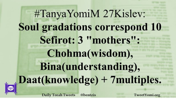 #TanyaYomiM 27Kislev: Soul gradations correspond 10 Sefirot: 3 “mothers”: Chohma(wisdom), Bina(understanding), Daat(knowledge) + 7multiples.
