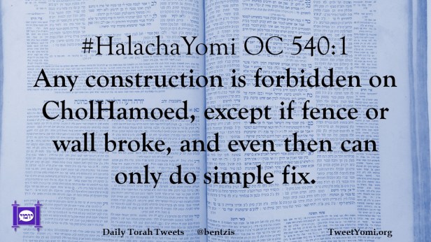 #HalachaYomi OC 540:1 Any construction is forbidden on CholHamoed, except if fence or wall broke, and even then can only do simple fix.