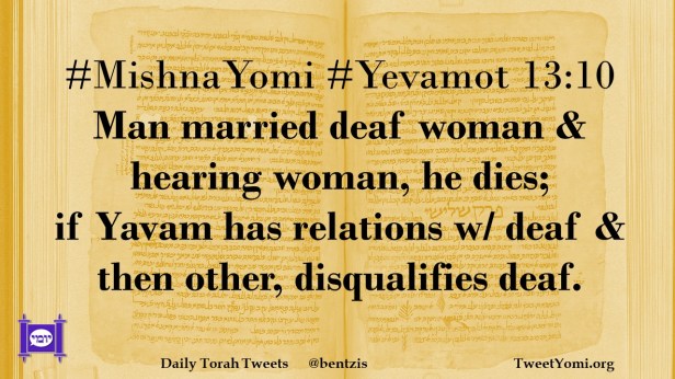 #MishnaYomi #Yevamot 13:10 Man married deaf woman & hearing woman, he dies; if Yavam has relations w/ deaf & then other, disqualifies deaf.