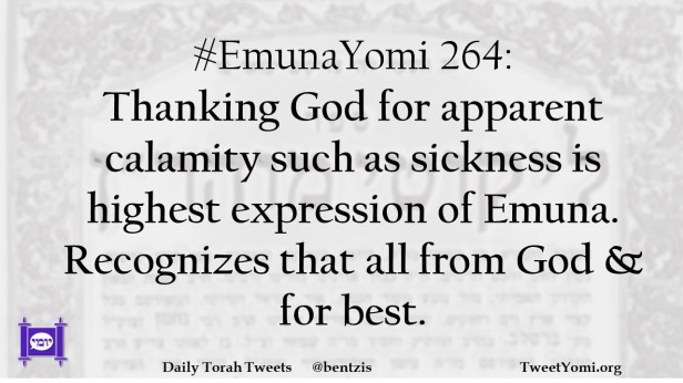#EmunaYomi 264: Thanking God for apparent calamity such as sickness is highest expression of Emuna. Recognizes that all from God & for best.