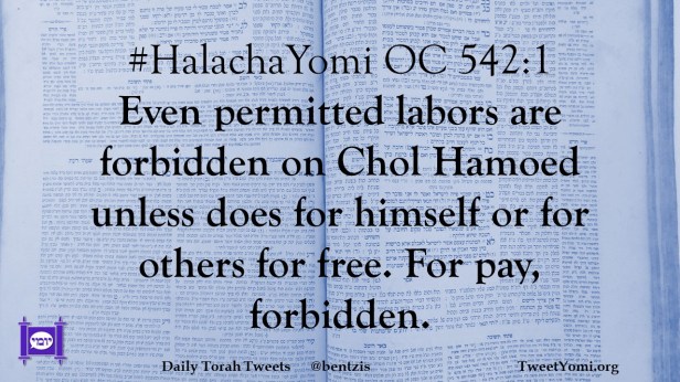 #HalachaYomi OC 542:1 Even permitted labors are forbidden on Chol Hamoed unless does for himself or for others for free. For pay, forbidden.