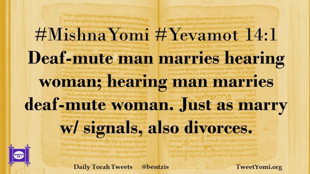 #MishnaYomi #Yevamot 14:1 Deaf-mute man marries hearing woman; hearing man marries deaf-mute woman. Just as marry w/ signals, also divorces.