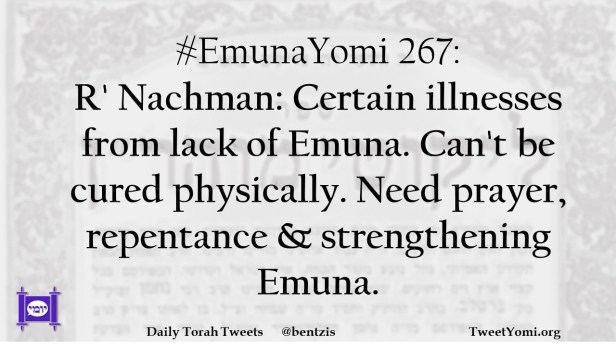 #EmunaYomi 267: R’ Nachman: Certain illnesses from lack of Emuna. Can’t be cured physically. Need prayer, repentance & strengthening Emuna.