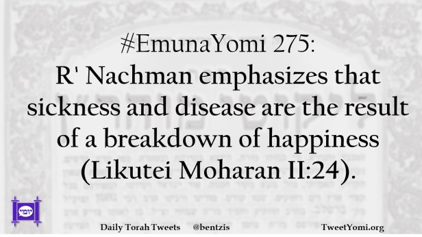 #EmunaYomi 275: R’ Nachman emphasizes that sickness and disease are the result of a breakdown of happiness (Likutei Moharan II:24).