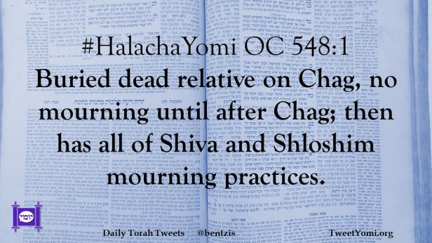 #HalachaYomi OC 548:1 Buried dead relative on Chag, no mourning until after Chag; then has all of Shiva and Shloshim mourning practices.