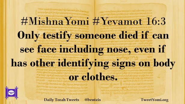 #MishnaYomi #Yevamot 16:3 Only testify someone died if can see face including nose, even if has other identifying signs on body or clothes.