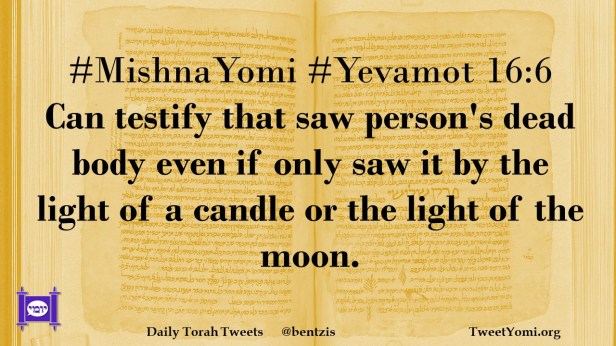 #MishnaYomi #Yevamot 16:6 Can testify that saw person’s dead body even if only saw it by the light of a candle or the light of the moon.