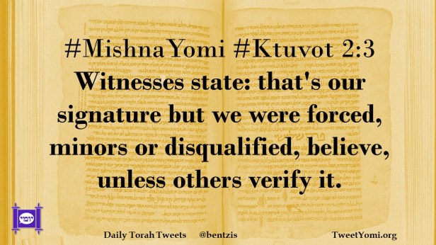 MishnaYomi #Ktuvot 2:3 Witnesses state: that’s our signature but we were forced, minors or disqualified, believe, unless others verify it.