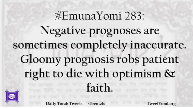 #EmunaYomi 283: Negative prognoses are sometimes completely inaccurate. Gloomy prognosis robs patient right to die with optimism & faith.