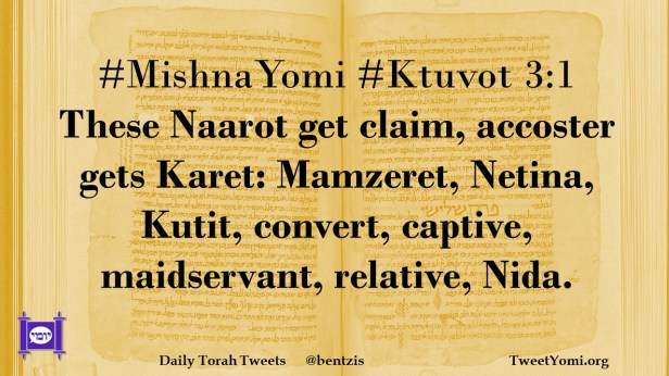 #MishnaYomi #Ktuvot 3:1 These Naarot get claim, accoster gets Karet: Mamzeret, Netina, Kutit, convert, captive, maidservant, relative, Nida