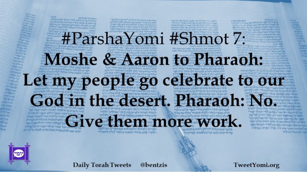 #ParshaYomi #Shmot 7: Moshe & Aaron to Pharaoh: Let my people go celebrate to our God in the desert. Pharaoh: No. Give them more work.