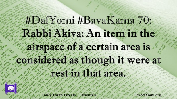 BavaKama, DafYomi #DafYomi #BavaKama 70 Date: January 14, 2024Author: netanelspitz #DafYomi #BavaKama 70: Rabbi Akiva: An item in the airspace of a certain area is considered as though it were at rest in that area. Share this: Share on X (Opens in new window) X Share on Facebook (Opens in new window) Facebook Like Loading... Related