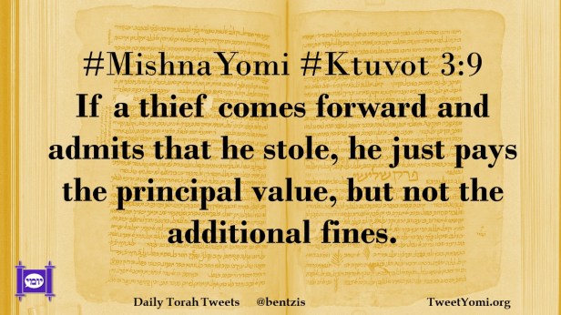 #MishnaYomi #Ktuvot 3:9 If a thief comes forward and admits that he stole, he just pays the principle value, but not the additional fines.