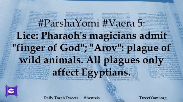 #ParshaYomi #Vaera 5: Lice: Pharaoh’s magicians admit “finger of God”; “Arov”: plague of wild animals. All plagues only affect Egyptians.