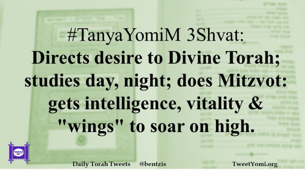 #TanyaYomiM 3Shvat: Directs desire to Divine Torah; studies day, night; does Mitzvot: gets intelligence, vitality & “wings” to soar on high.