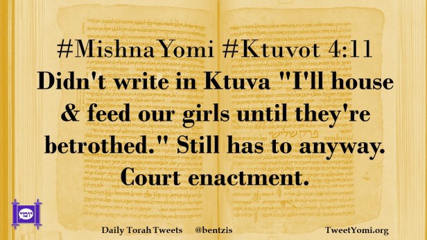 #MishnaYomi #Ktuvot 4:11 Didn’t write in Ktuva “I’ll house & feed our girls until they’re betrothed.” Still has to anyway. Court enactment.