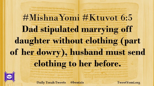 #MishnaYomi #Ktuvot 6:5 Dad stipulated marrying off daughter without clothing (part of her dowry), husband must send clothing to her before.