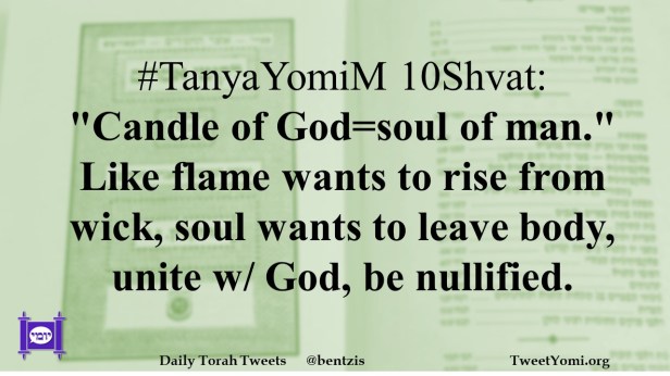 #TanyaYomiM 10Shvat: “Candle of God=soul of man.” Like flame wants to rise from wick, soul wants to leave body, unite w/ God, be nullified.