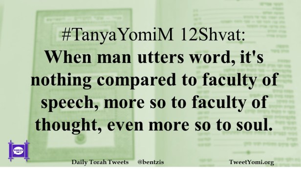 #TanyaYomiM 12Shvat: When man utters word, it’s nothing compared to faculty of speech, more so to faculty of thought, even more so to soul.