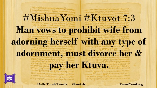 #MishnaYomi #Ktuvot 7:3 Man vows to prohibit wife from adorning herself with any type of adornment, must divorce her & pay her Ktuva.