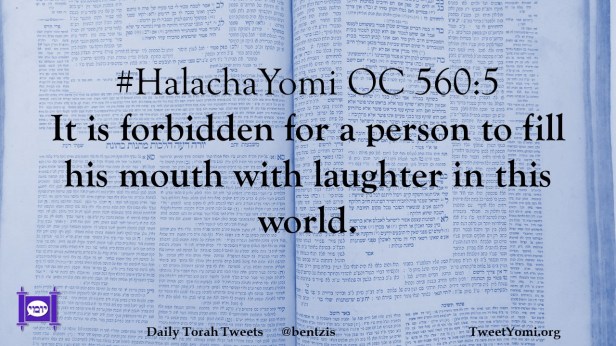 HalachaYomi #HalachaYomi OC 560:5 Date: February 4, 2024Author: netanelspitz #HalachaYomi OC 560:5 It is forbidden for a person to fill his mouth with laughter in this world. Share this: Share on X (Opens in new window) X Share on Facebook (Opens in new window) Facebook Like Loading... Related