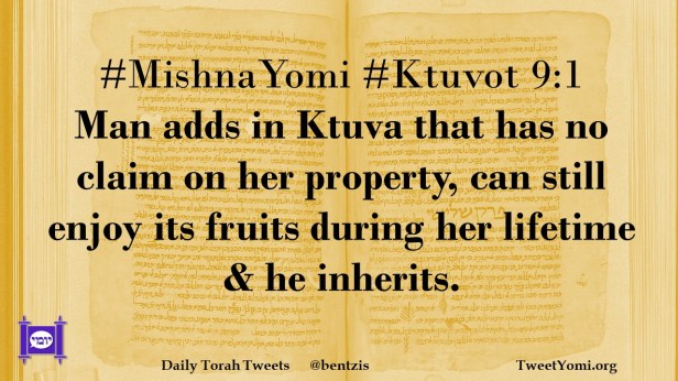 #MishnaYomi #Ktuvot 9:1 Man adds in Ktuva that has no claim on her property, can still enjoy its fruits during her lifetime & he inherits.