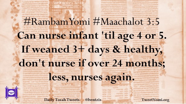 #RambamYomi #Maachalot 3:5 Can nurse infant ’til age 4 or 5. If weaned 3+ days & healthy, don’t nurse if over 24 months; less, nurses again.